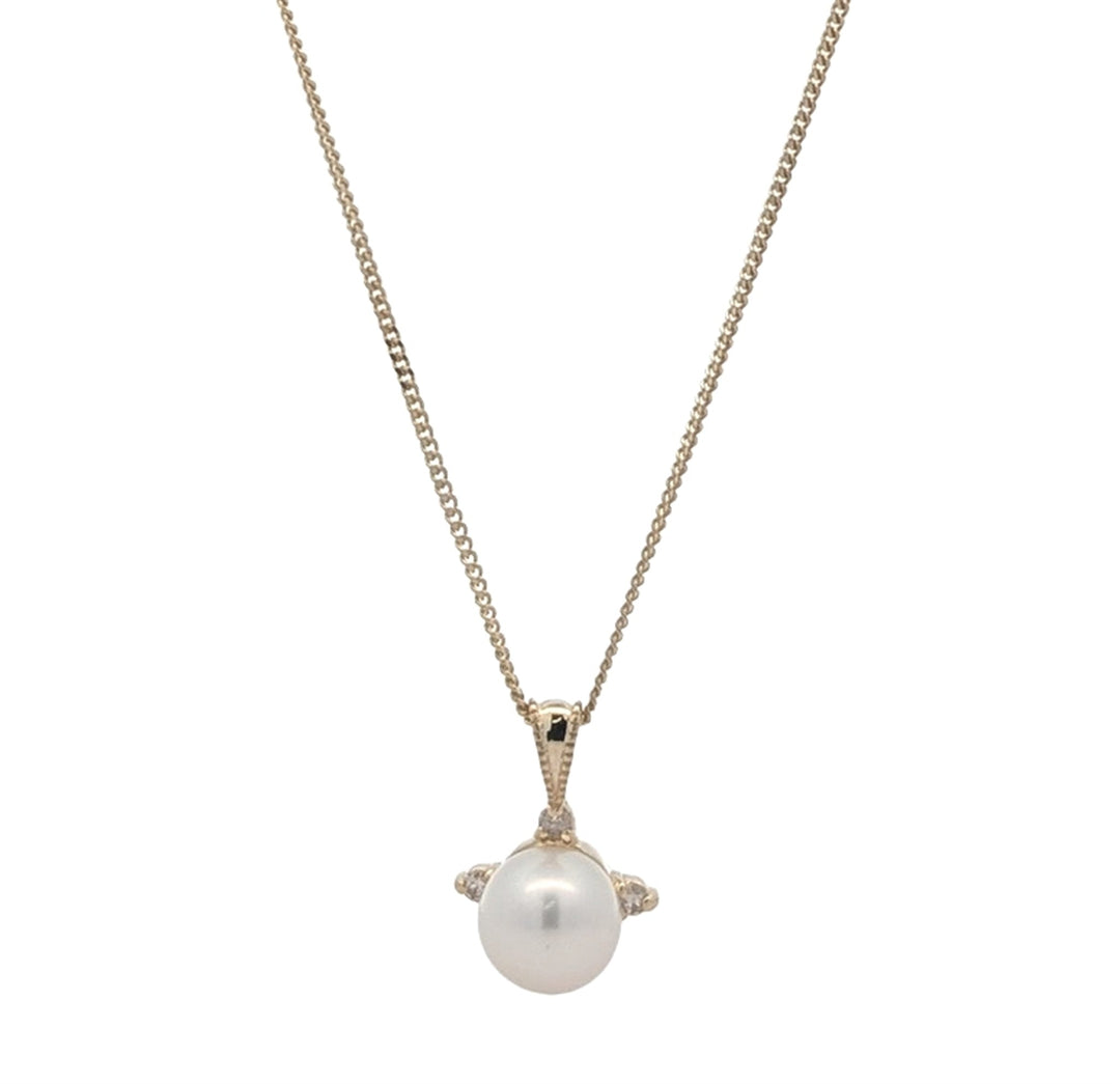 10KT Yellow Gold Pearl and 0.03ctw Diamond 18" Necklace