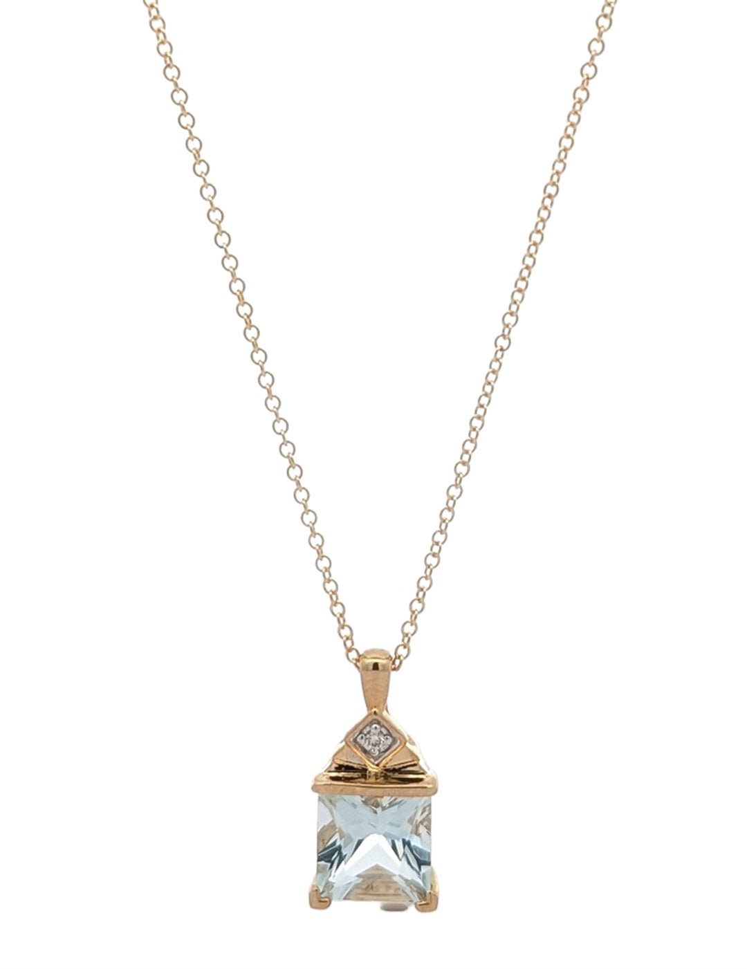 10KT Yellow Gold Aquamarine and 0.03ctw Diamond 18" Necklace