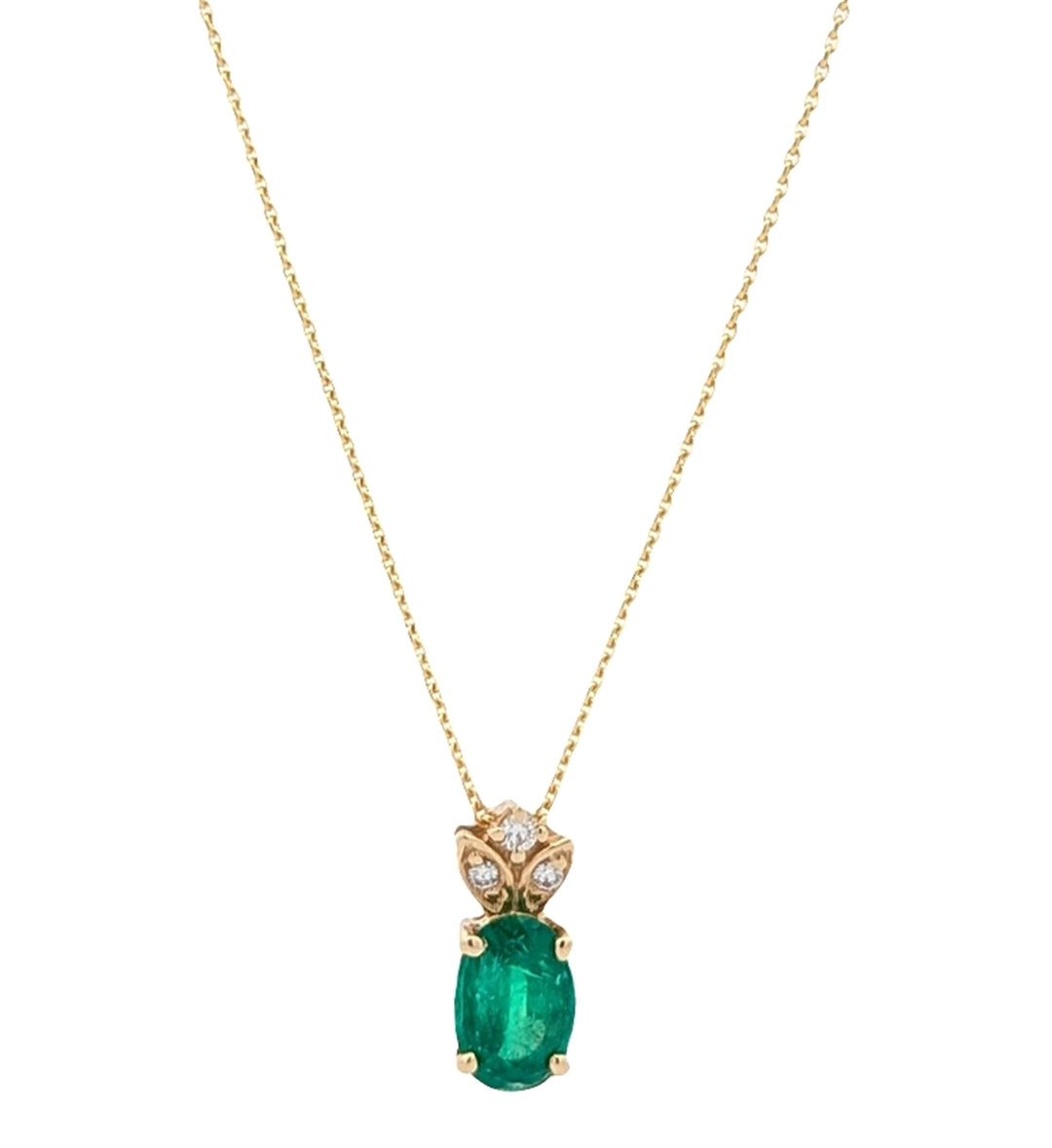 10KT Yellow Gold Emerald and 0.03ctw Diamond Necklace