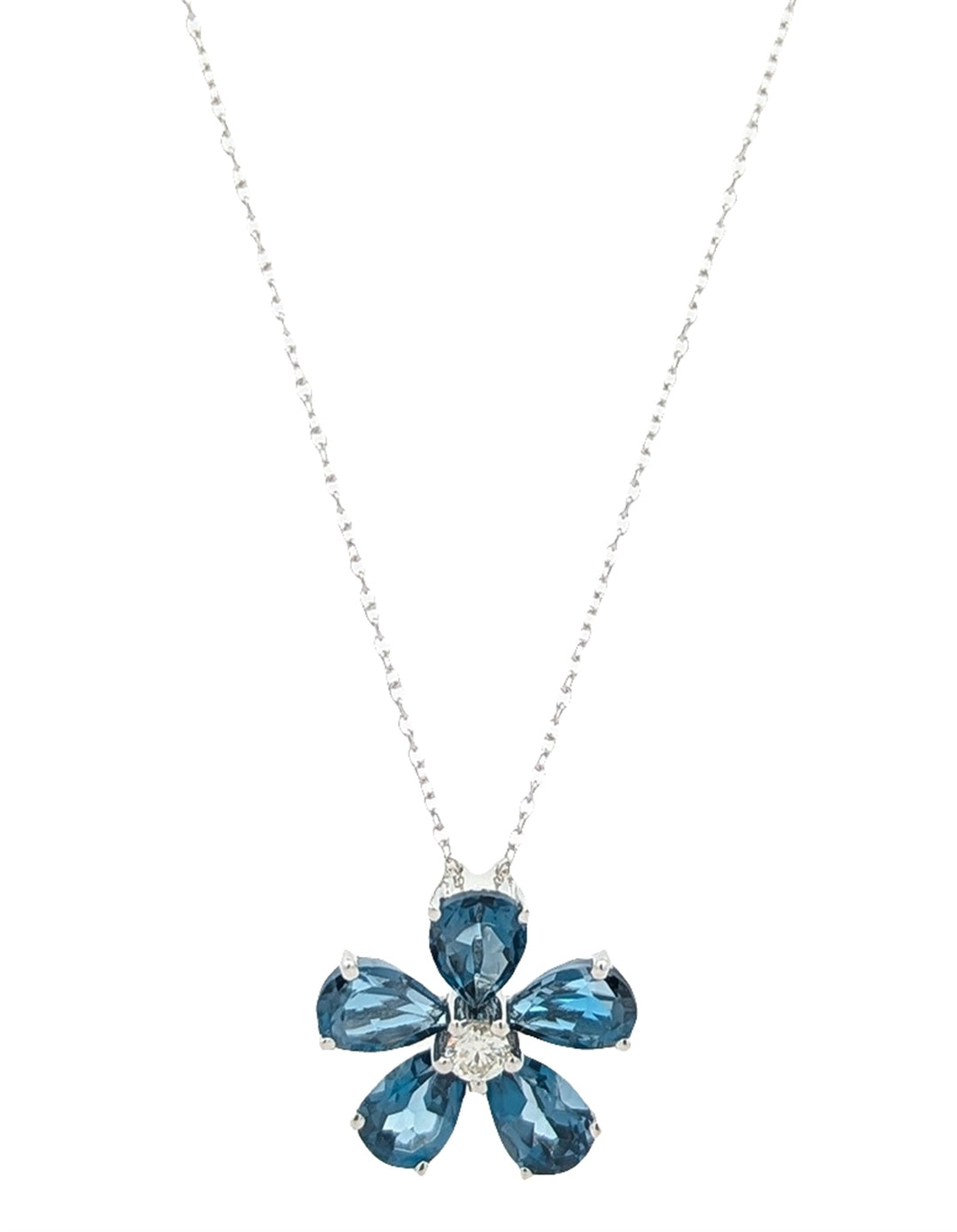 14KT White Gold London Blue Topaz and Diamond 18" Necklace