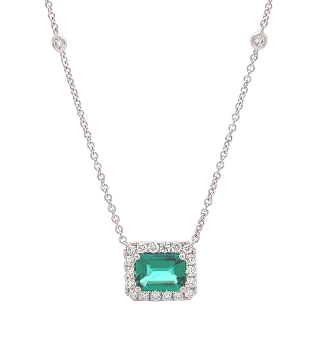 18K White Gold Emerald 0.35ct Diamond Necklace