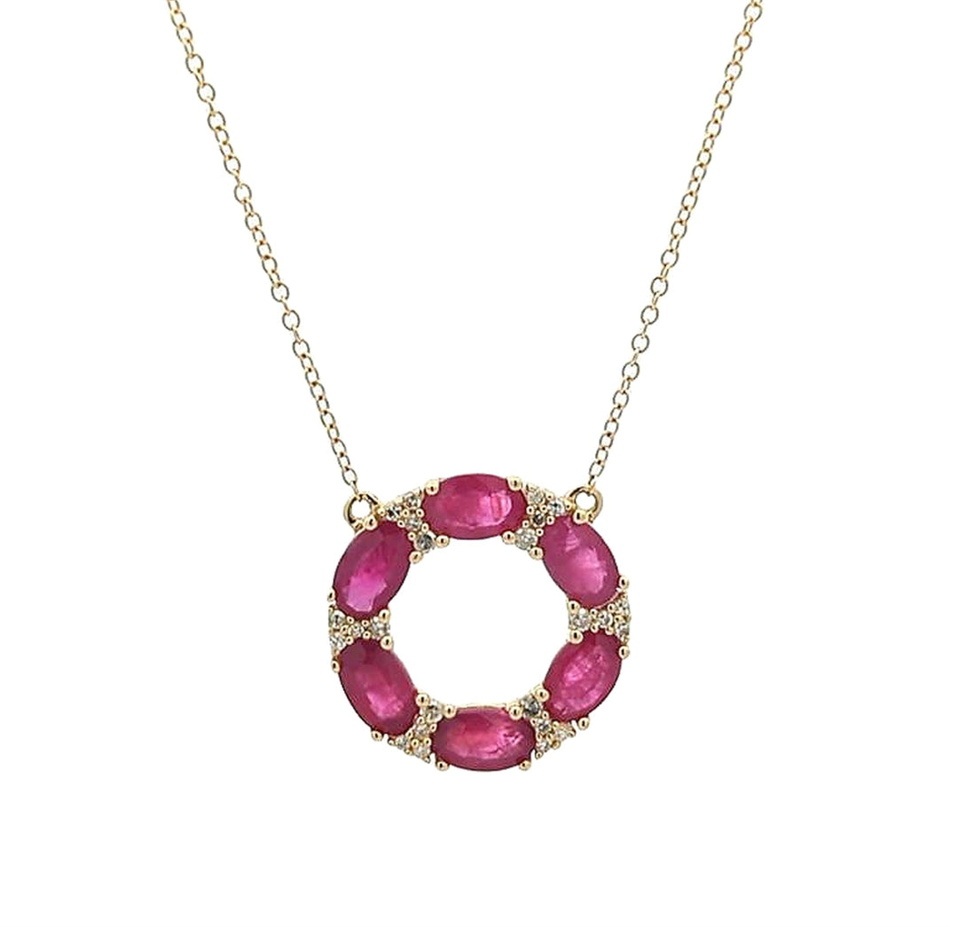14KT Yellow Gold Ruby and 0.09ctw Diamond Necklace