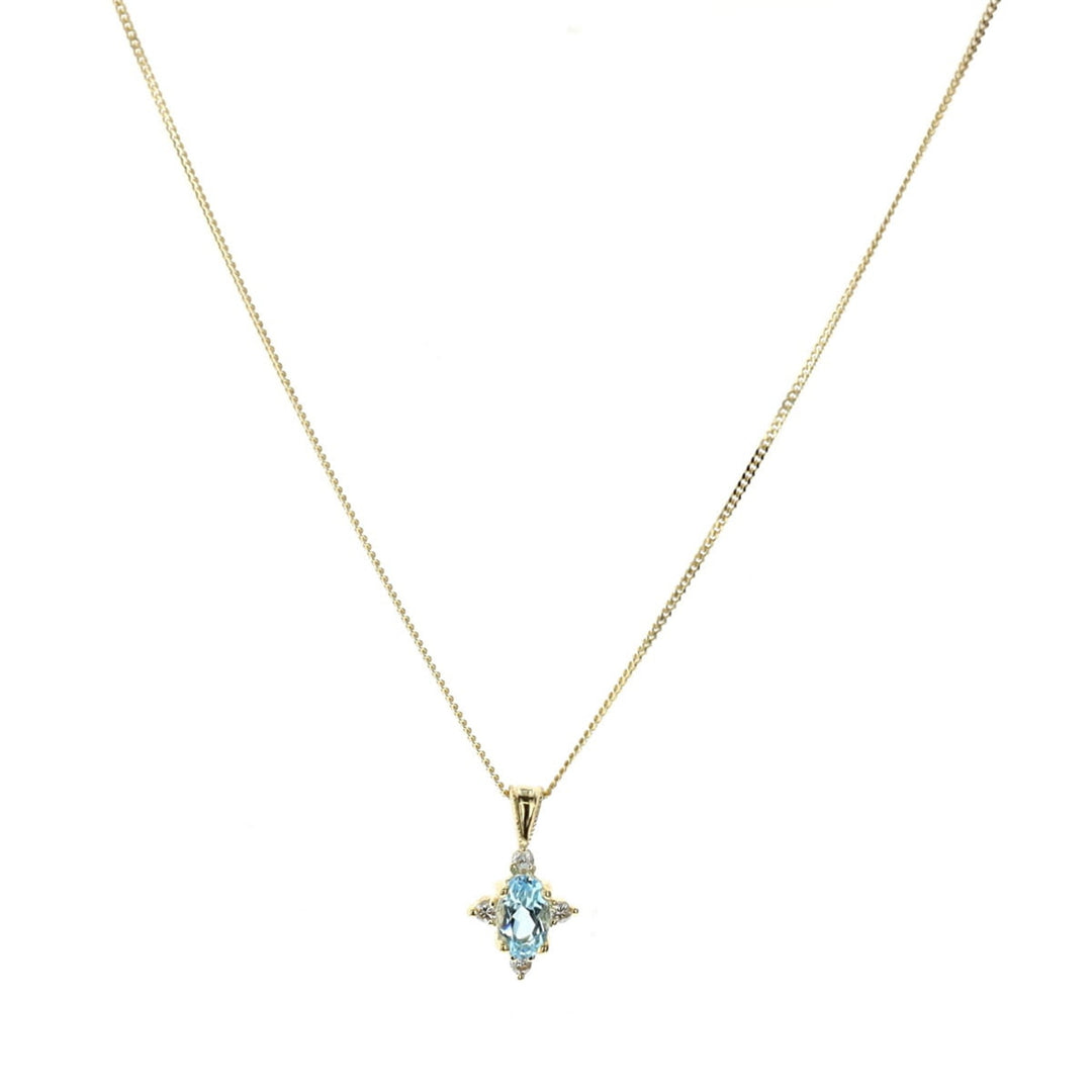 10KT Yellow Gold Blue Topaz 0.03ctw Diamond 18" Necklace