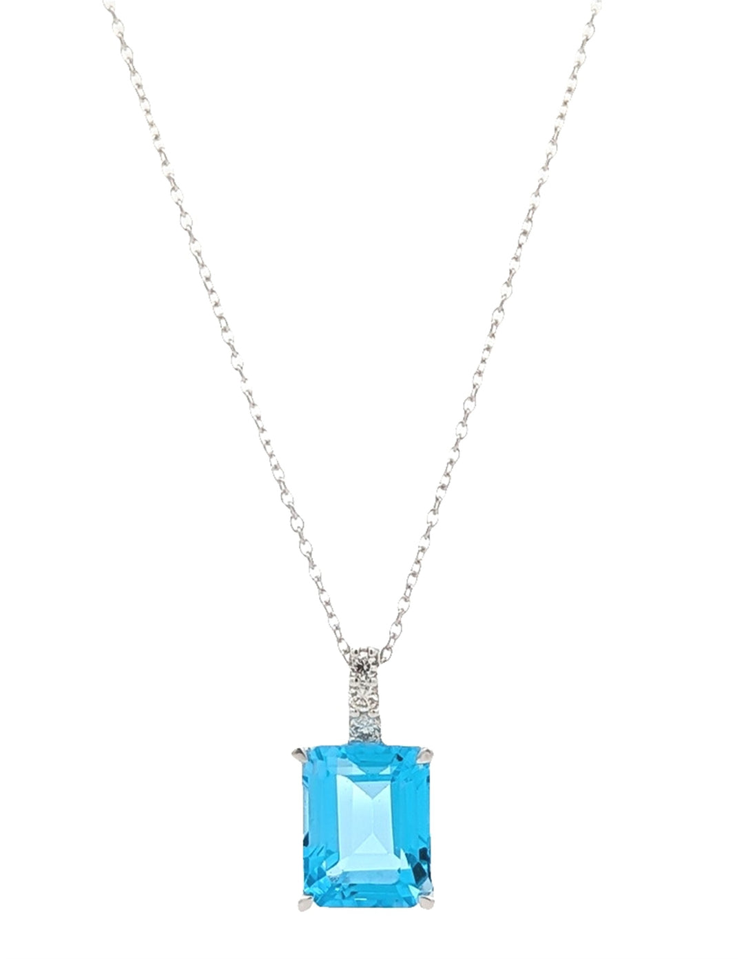 10KT White Gold Blue Topaz and 0.015ctw Diamond Necklace