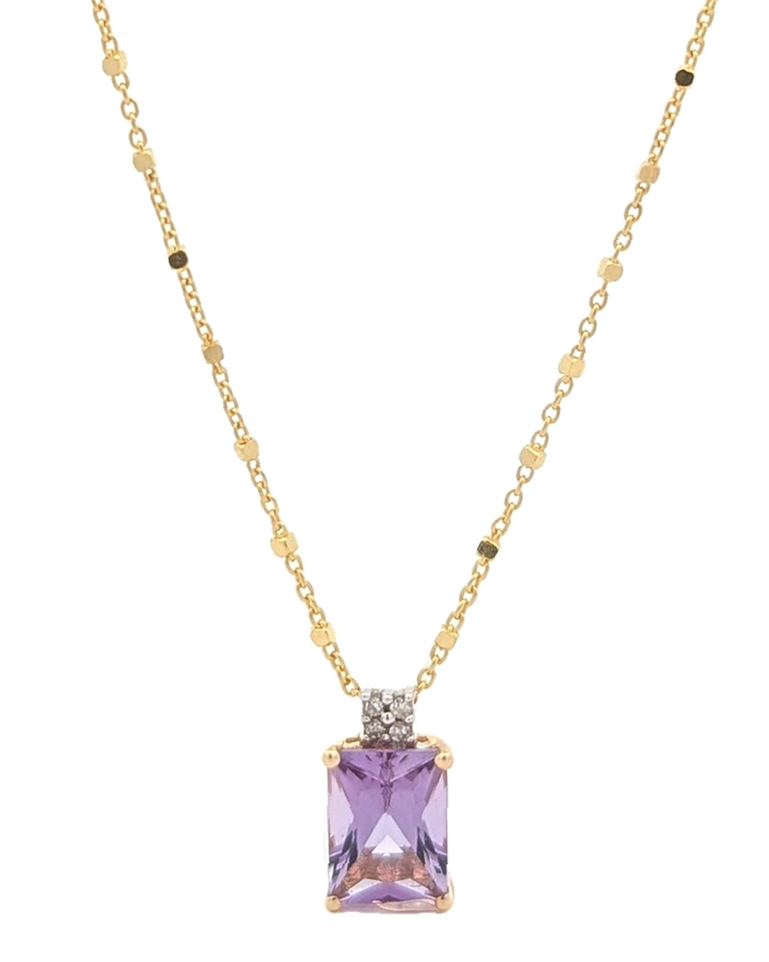 10KT Yellow Gold Amethyst and Diamond 17" Necklace