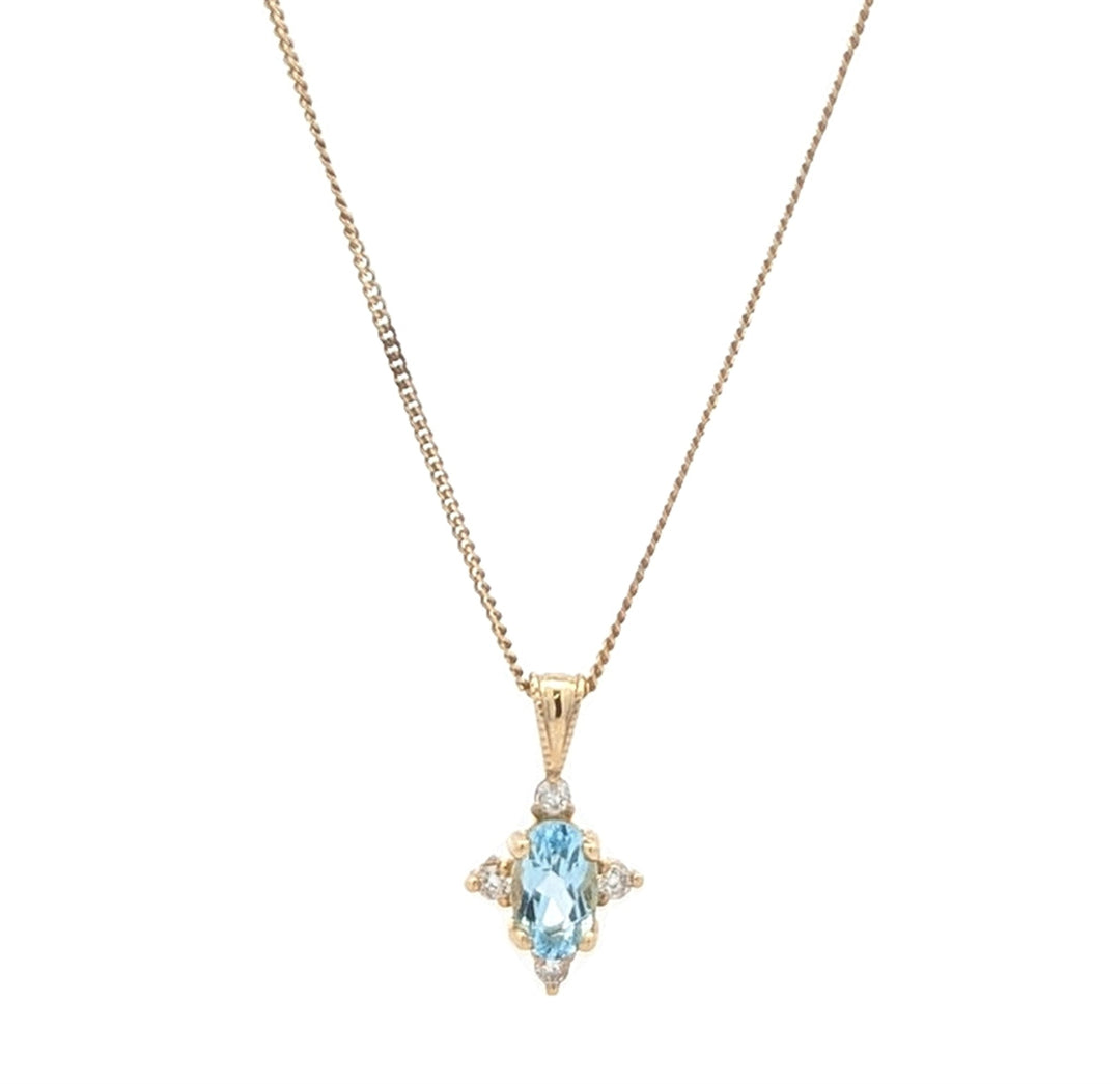 10KT Yellow Gold Aquamarine and 0.03ctw Diamond 18" Necklace
