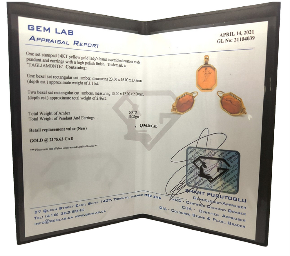 14KT Yellow Gold Amber Pendant and Earrings Estate Set