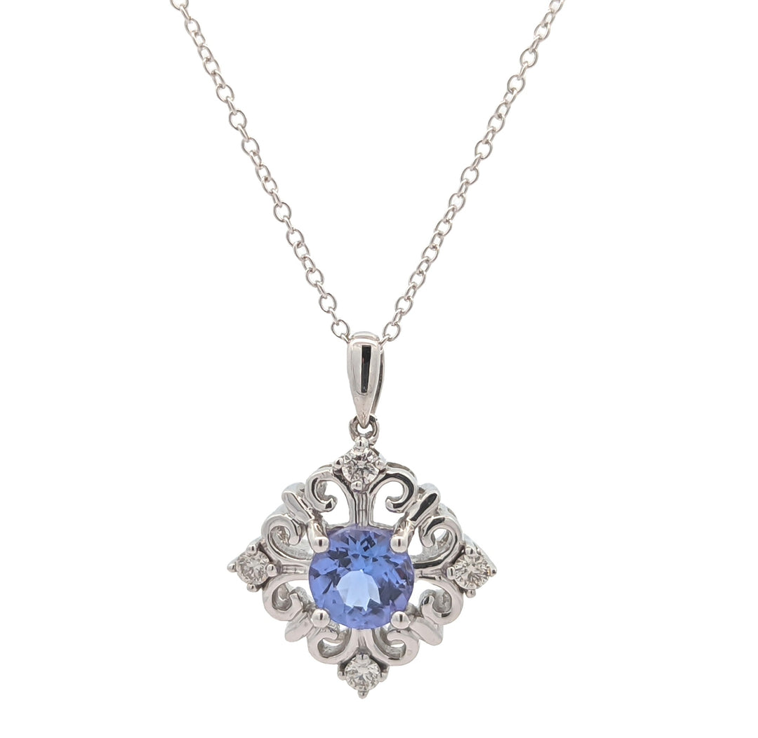 10KT White Gold Tanzanite and Diamond 18" Necklace