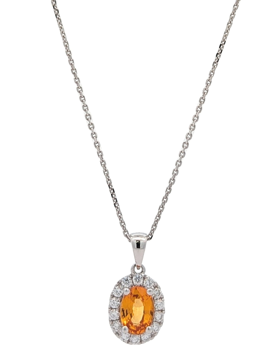 14-18KT White Gold Orange Sapphire and 0.22ctw Diamond 18" Necklace