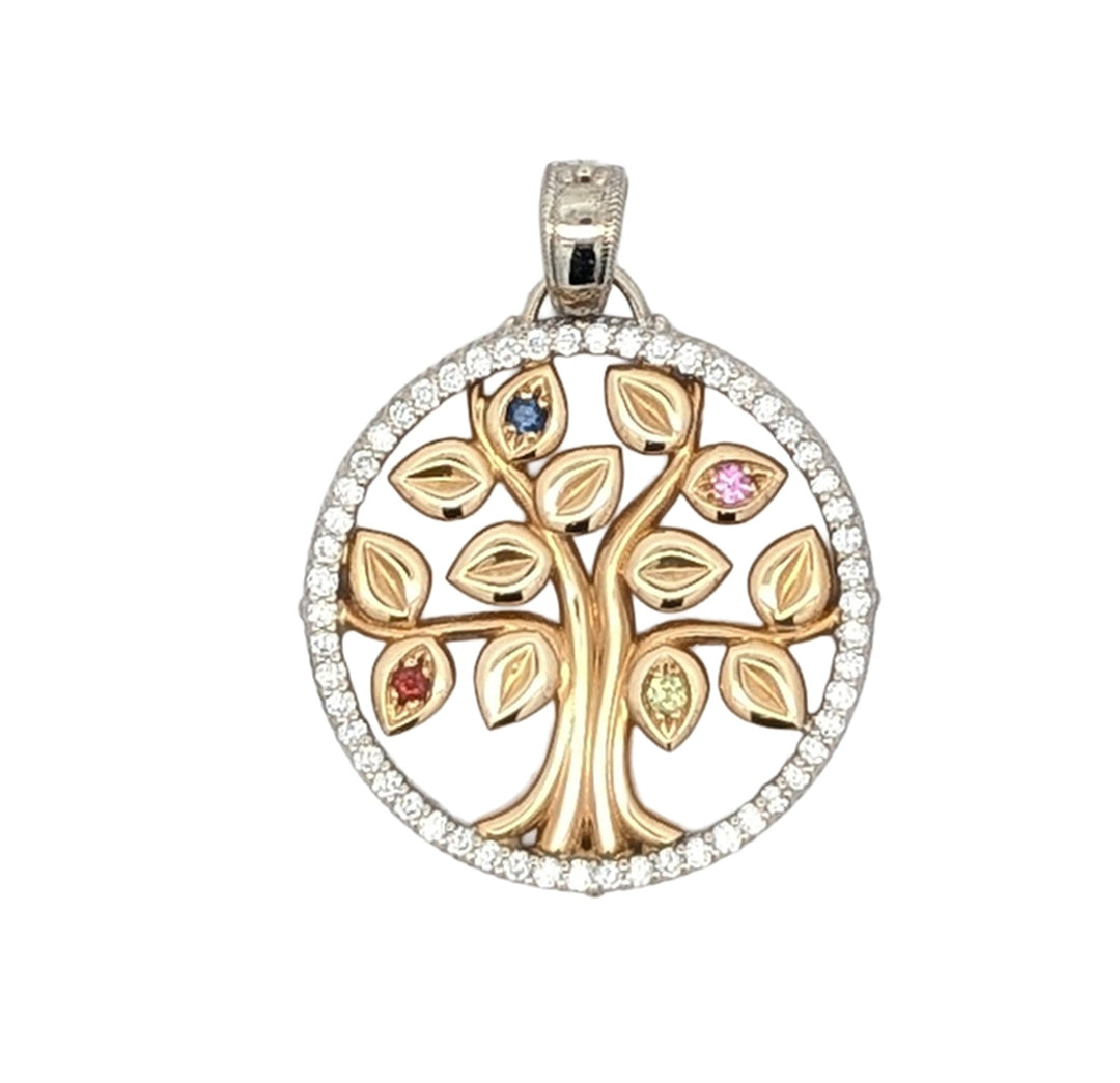14KT Yellow and White Gold Birthstone and 0.42ctw Diamond Family Tree Pendant
