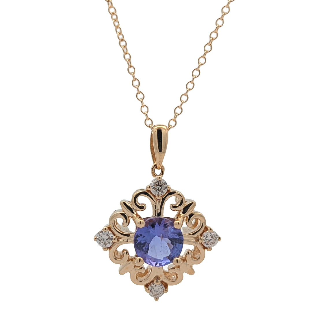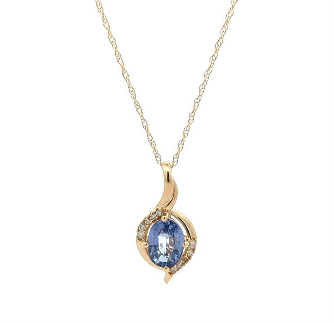 10KT Yellow Gold Tanzanite and Diamond 18" Necklace