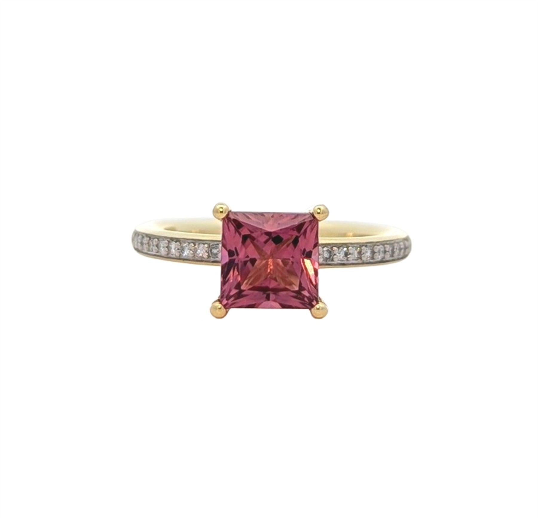 14K Yellow Gold Pink Tourmaline 0.099ctw Diamond Ring