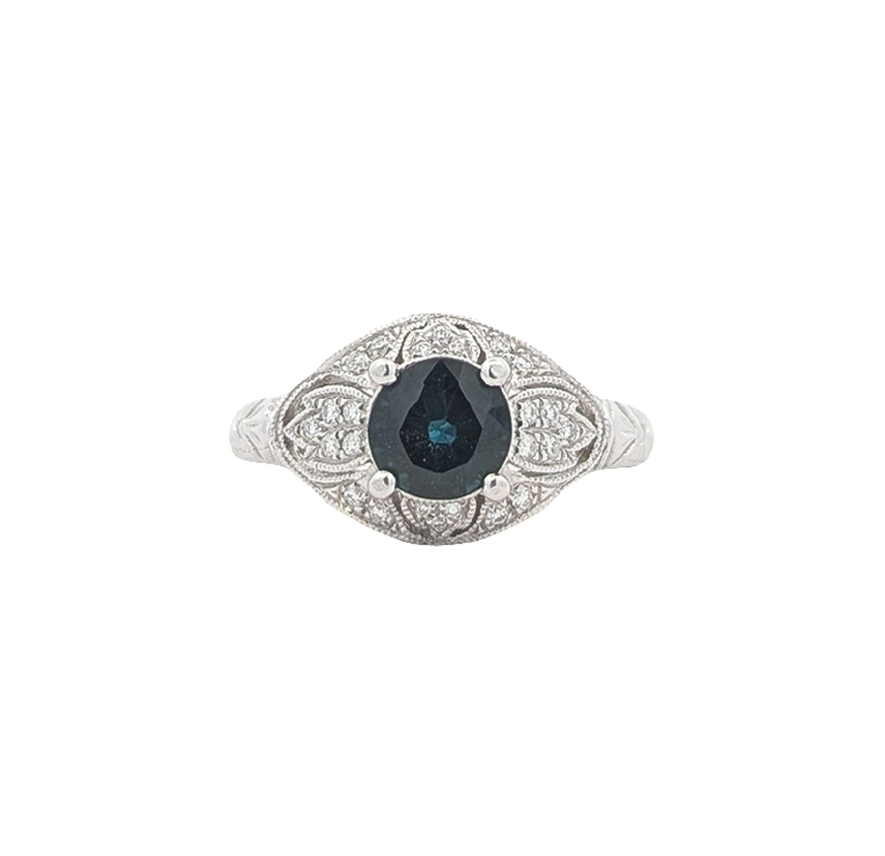 14KT White Gold Sapphire and 0.10ctw Diamond Ring