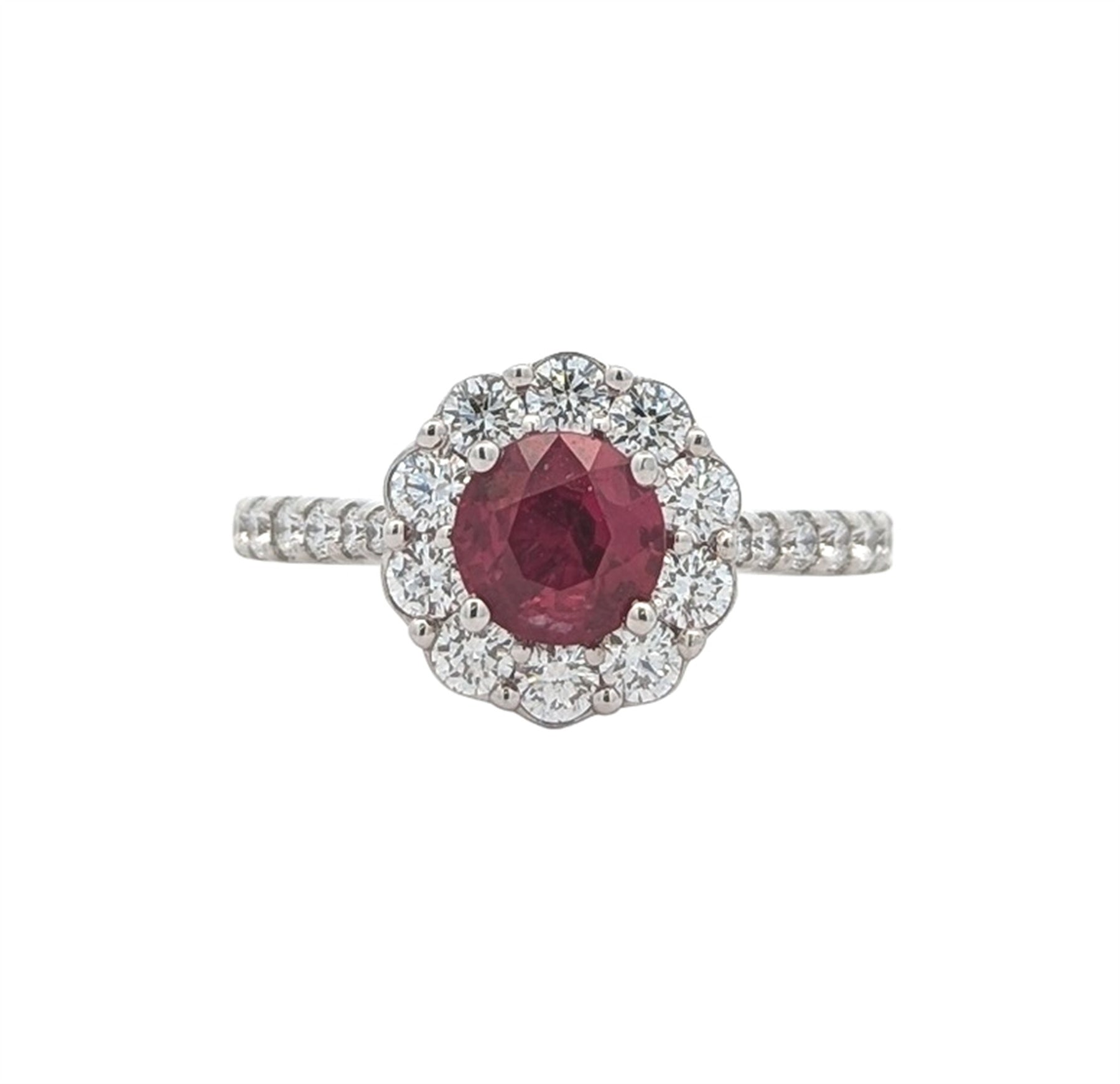 18KT White Gold Natural Ruby and 0.7ctw Diamond "Simon G" Estate Ring
