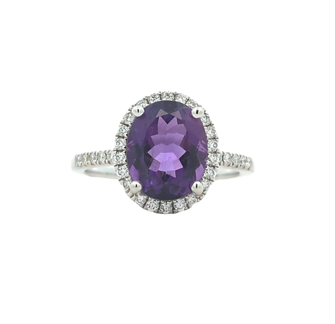 18KT White Gold Amethyst and 0.28ctw Diamond Ring