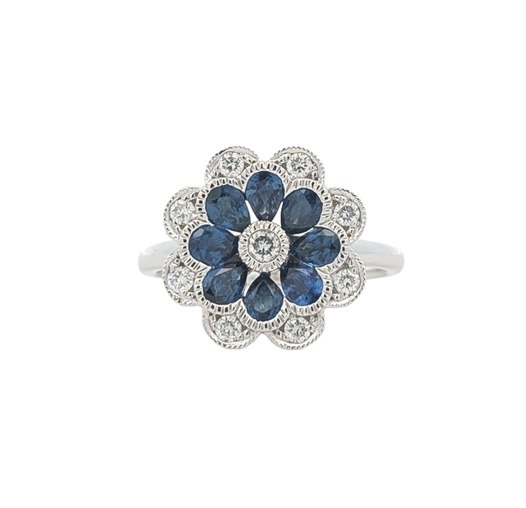 18KT White Gold Sapphire and 0.28ctw Diamond Estate Flower Ring