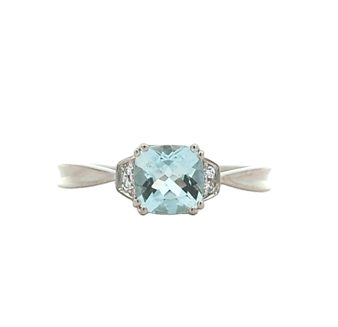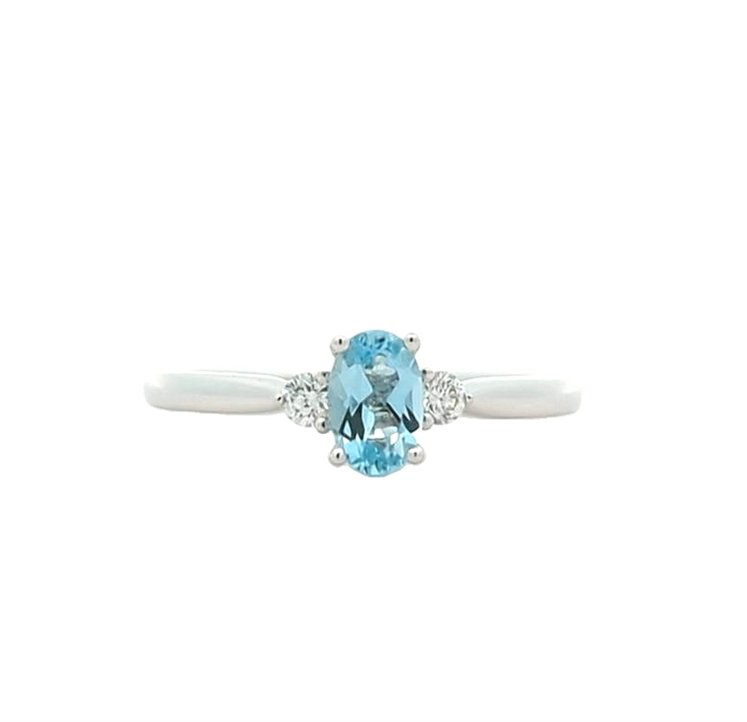 18KT White Gold Aquamarine and 0.10ctw Diamond Ring