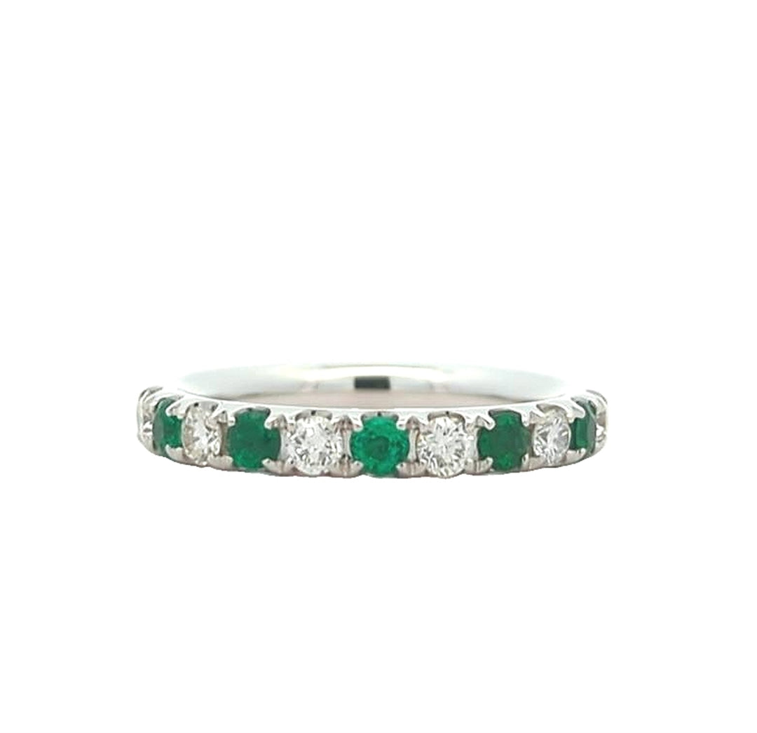 14KT White Gold Emerald and 0.40ctw Diamond Band