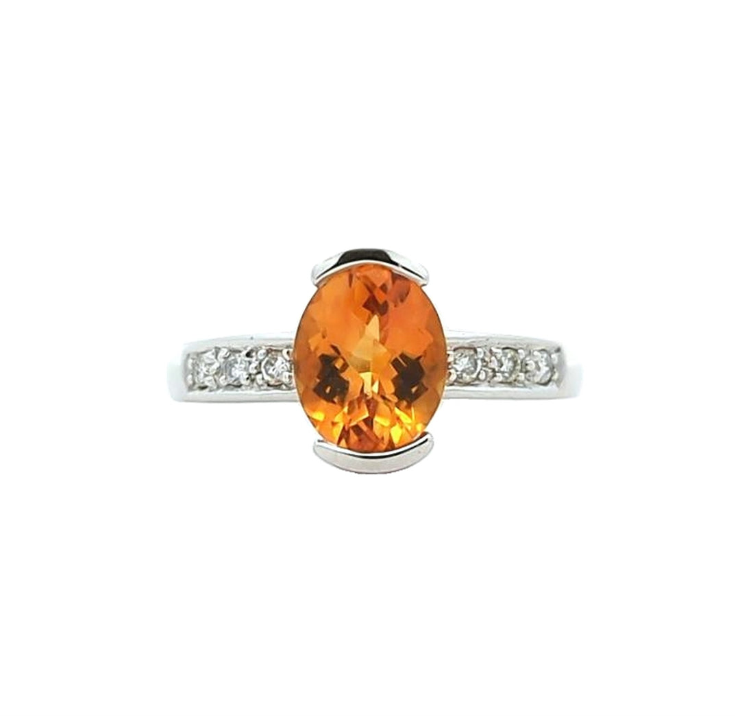 14KT White Gold Citrine and 0.10ctw Diamond Ring