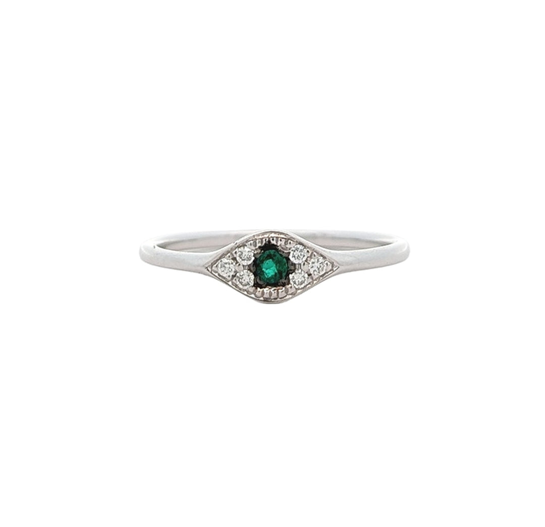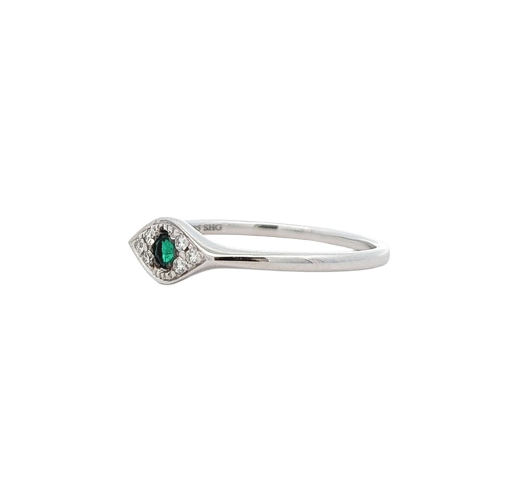 14K White Gold Emerald 0.06ctw Diamond Evil Eye Ring