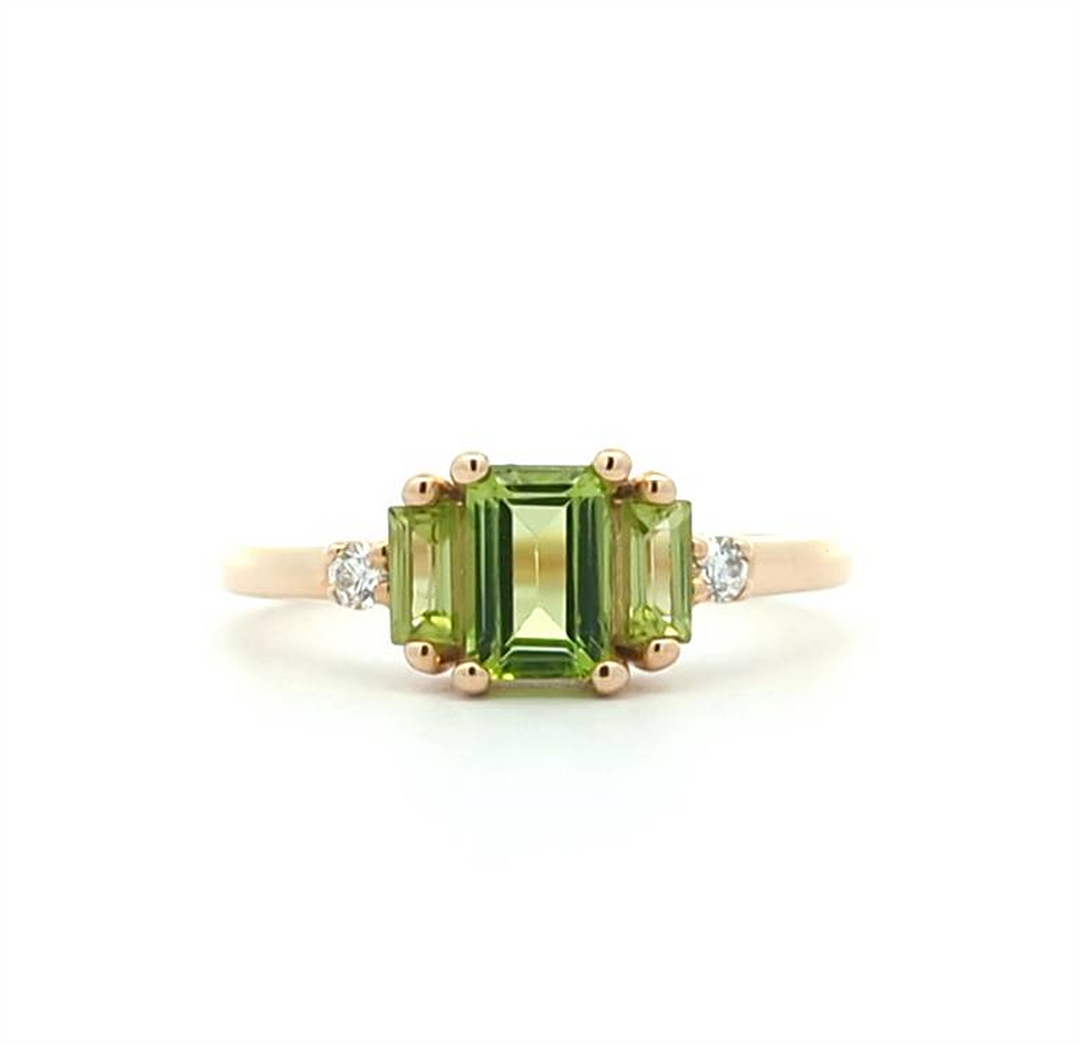 10KT Yellow Gold Genuine Peridot and 0.06ctw Canadian Diamond Ring