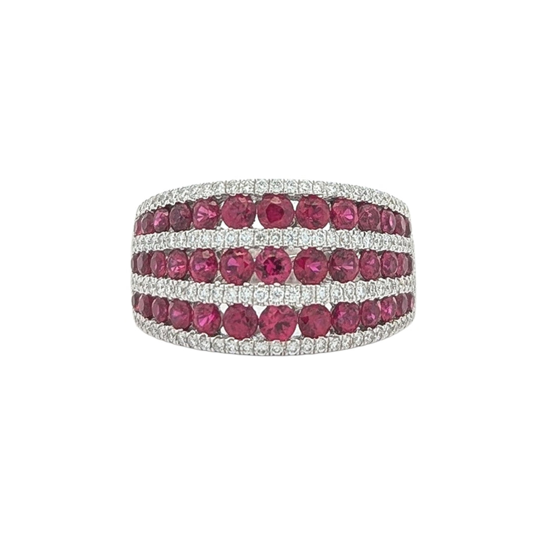 14KT White Gold Ruby and 0.08ctw Diamond Ring