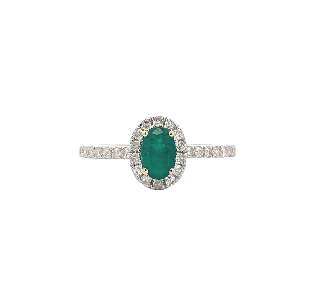 18K Two-Tone Genuine Emerald 0.50ctw Diamond Ring