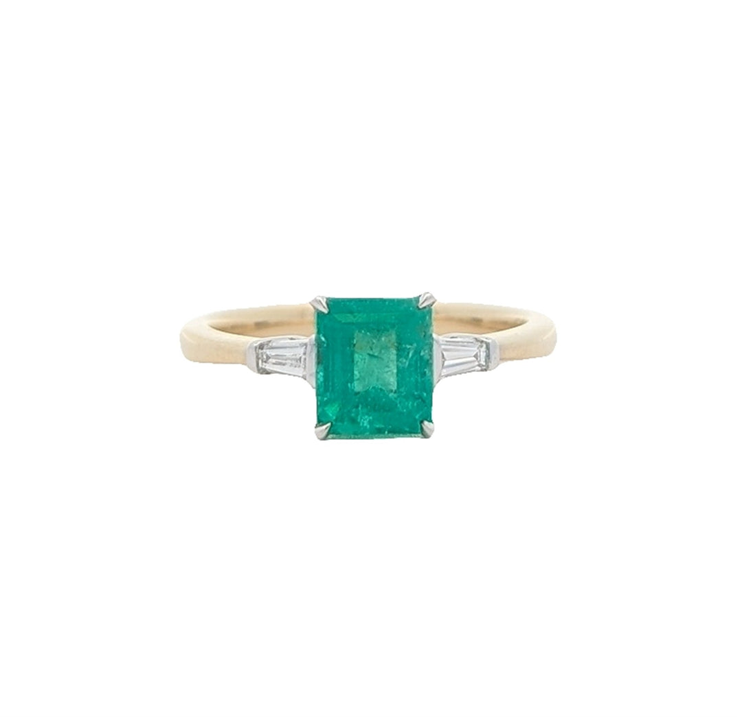 14KT Yellow and White Gold Emerald and 0.12ctw Diamond Ring