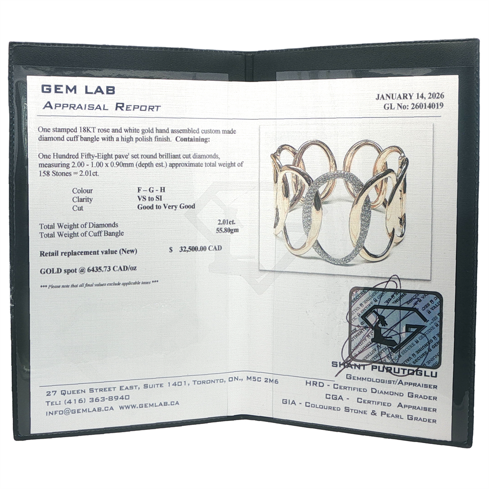 18KT Rose and White Gold 2.01ct Diamond Cuff Bangle