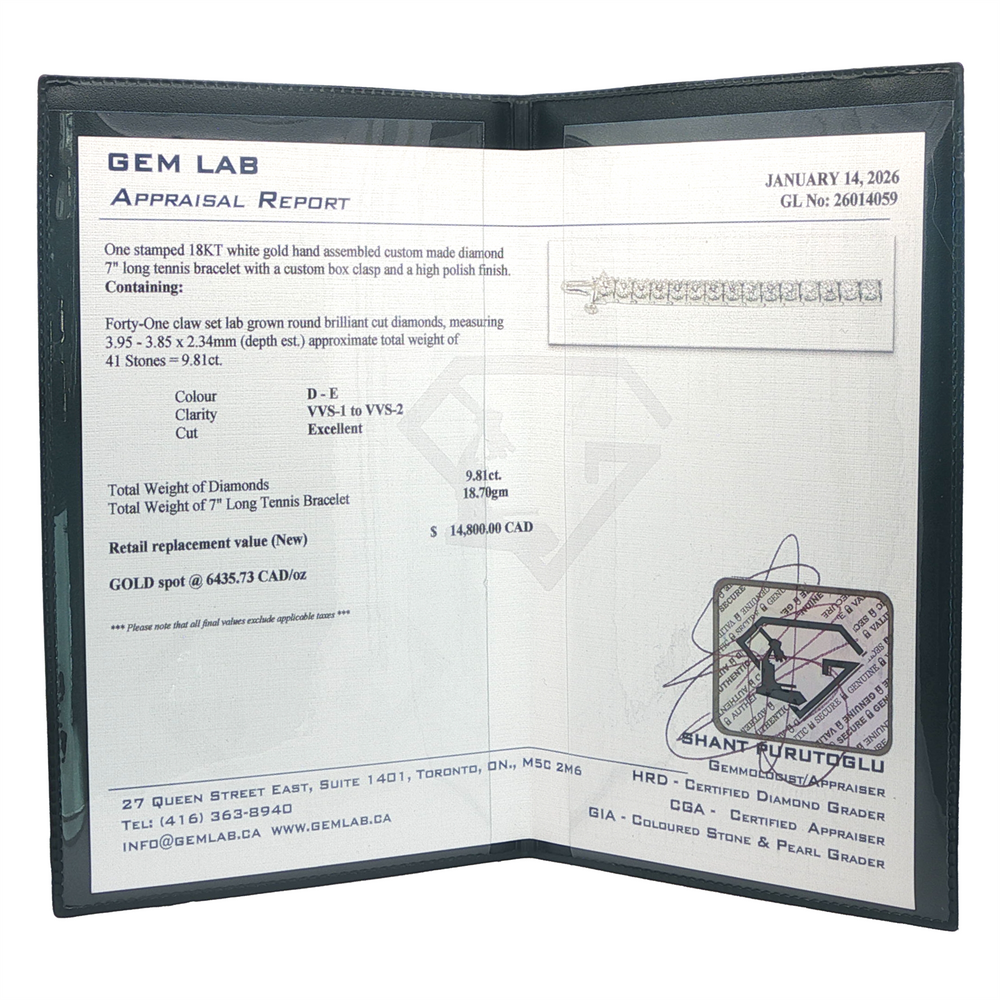 18KT White Gold 7in 9.81 Diamond Tennis Bracelet