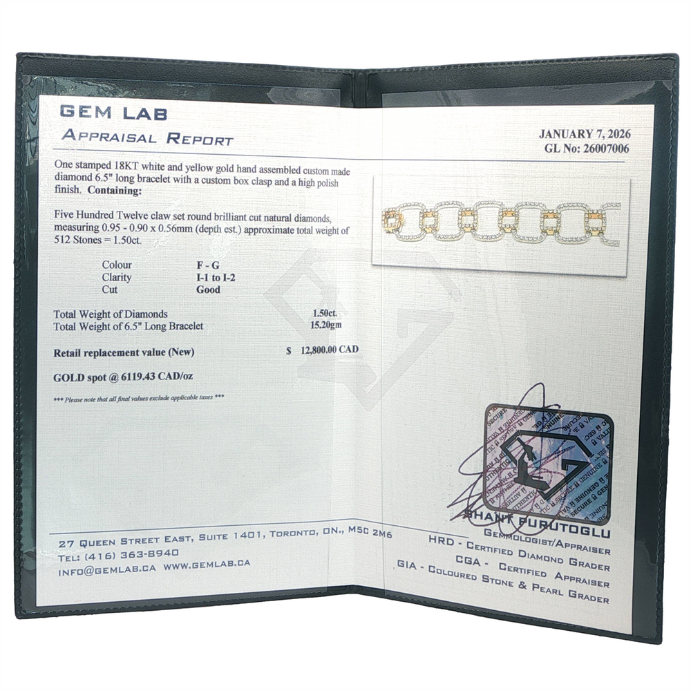 18KT White and Yellow Gold 6.5in 1.50ct. Diamond Bracelet