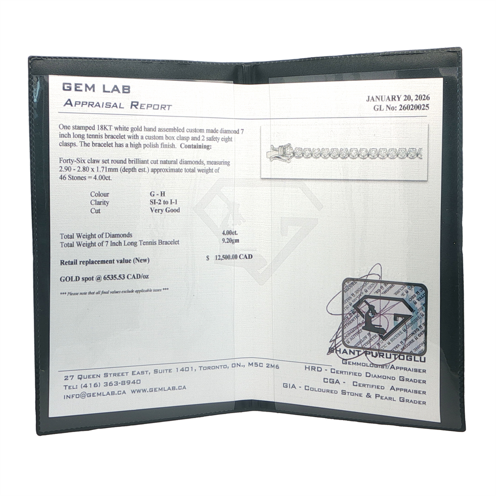 18KT White Gold 7in 4.00ct Tennis Bracelet