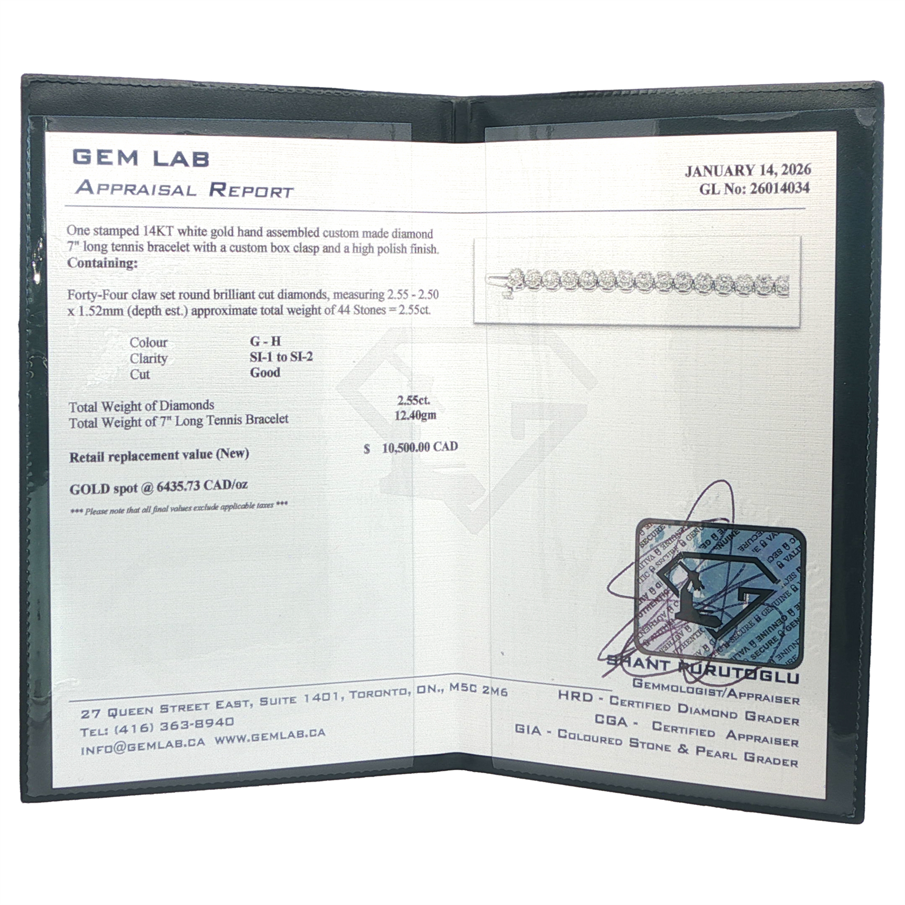 14KT White Gold 2.55ct 7in Tennis Bracelet