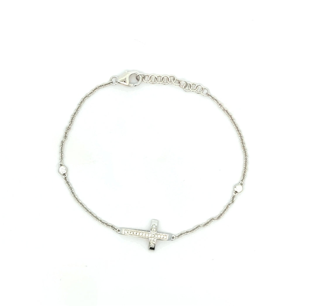 14KT White Gold Diamond Cross 7" Bracelet