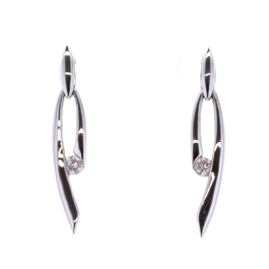 10KT White Gold 0.04ctw Diamond Icicles Open Heart Stud Earrings