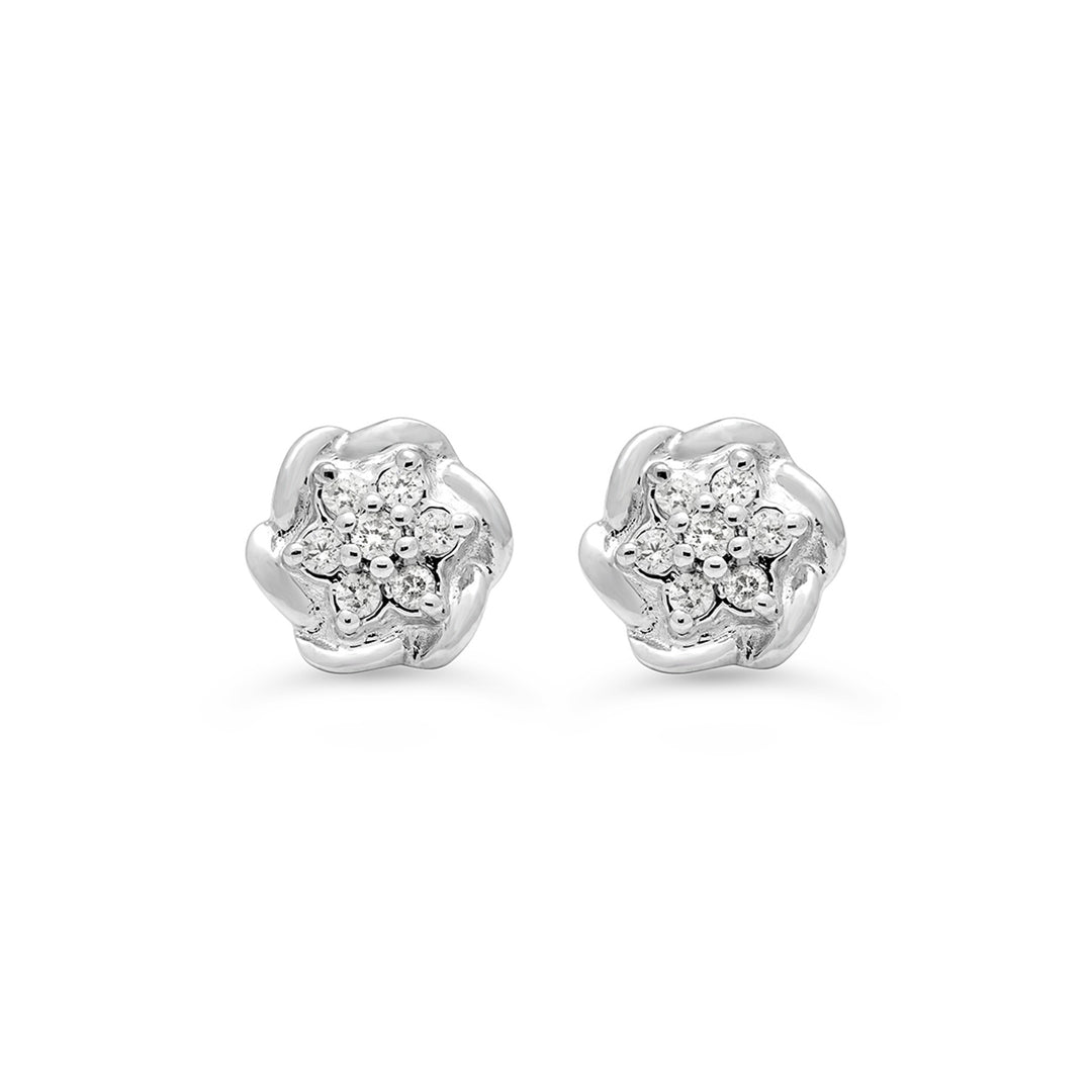 10KT White Gold 0.105ctw Diamond Icicles Flower Stud Earrings