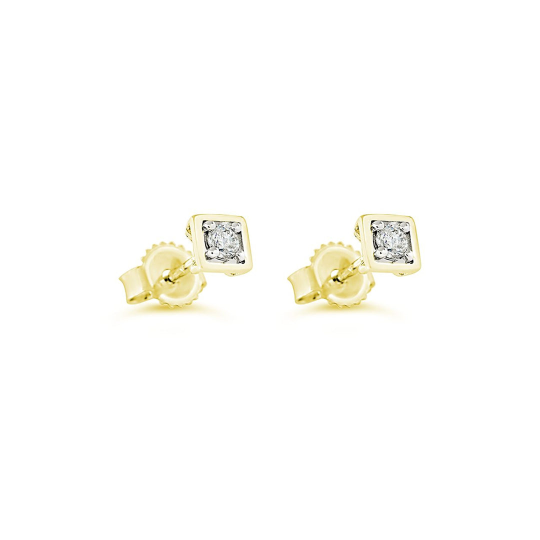 10KT Yellow Gold 0.10ctw Diamond Icicles Small Square Stud Earrings