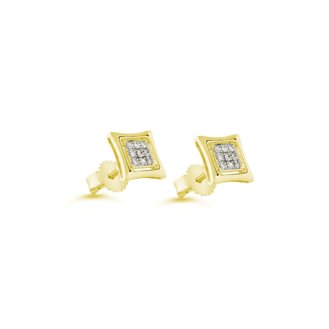 10KT Yellow Gold 0.10ctw Diamond Icicles Pave Square Stud Earrings