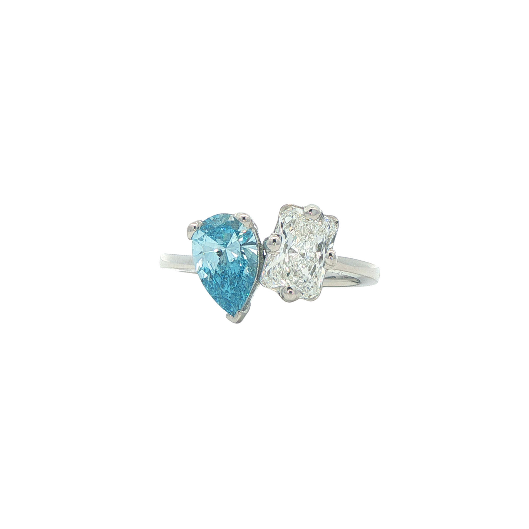 14K White Gold 2.05ctw Blue & White Lab Grown Diamond Toi Et Moi Ring