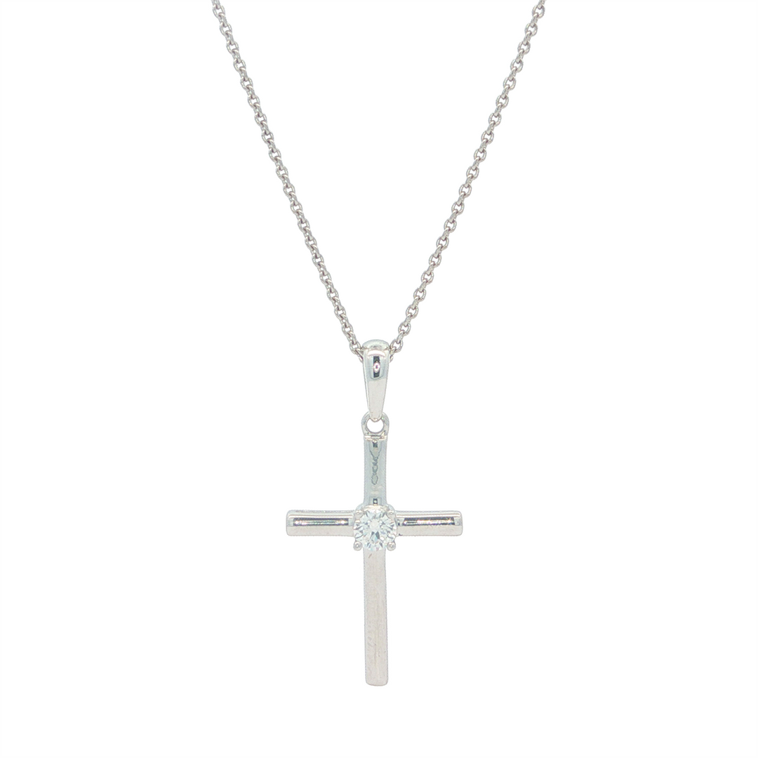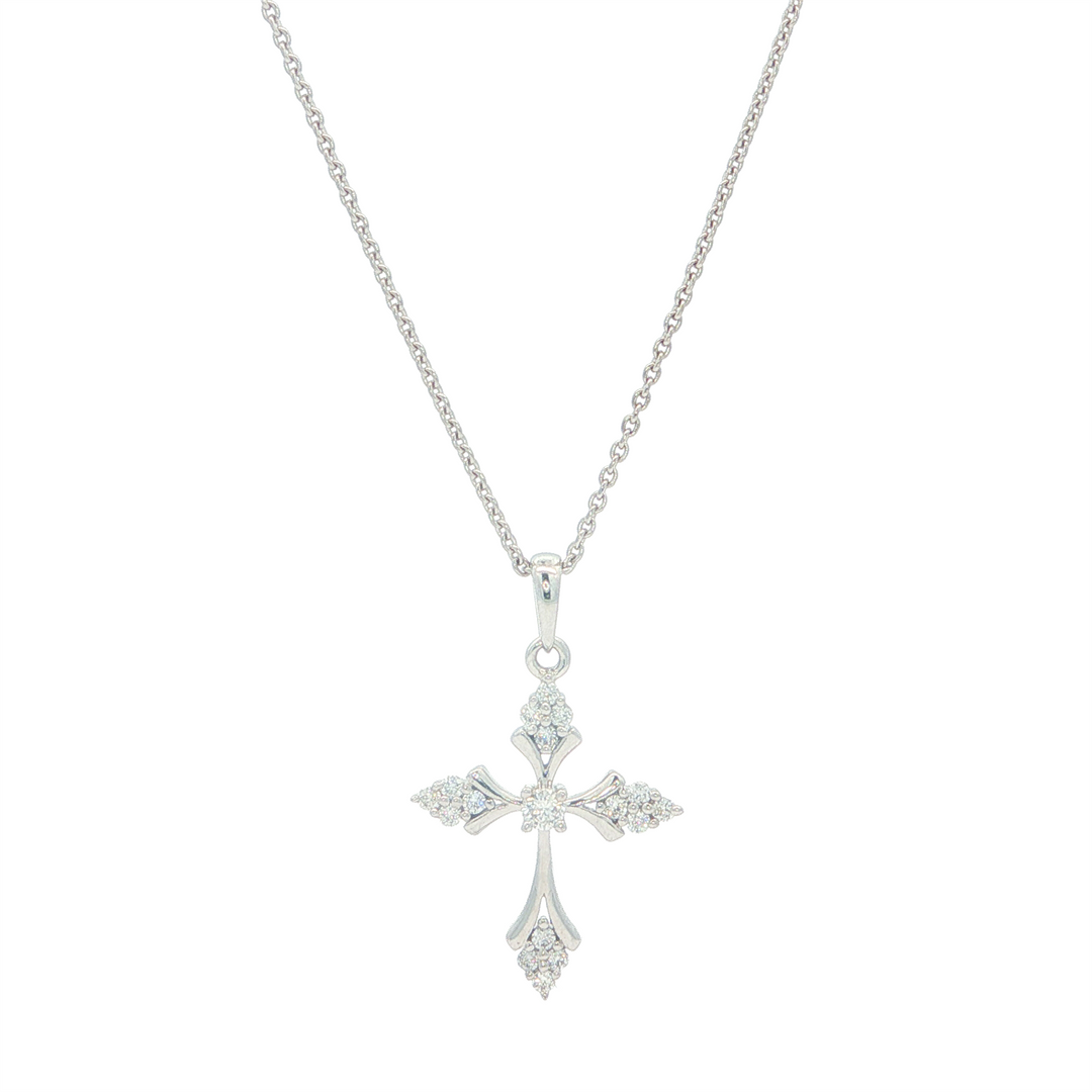 18KT White Gold 0.15 Diamond Cross Pendant with 18" Cable Chain