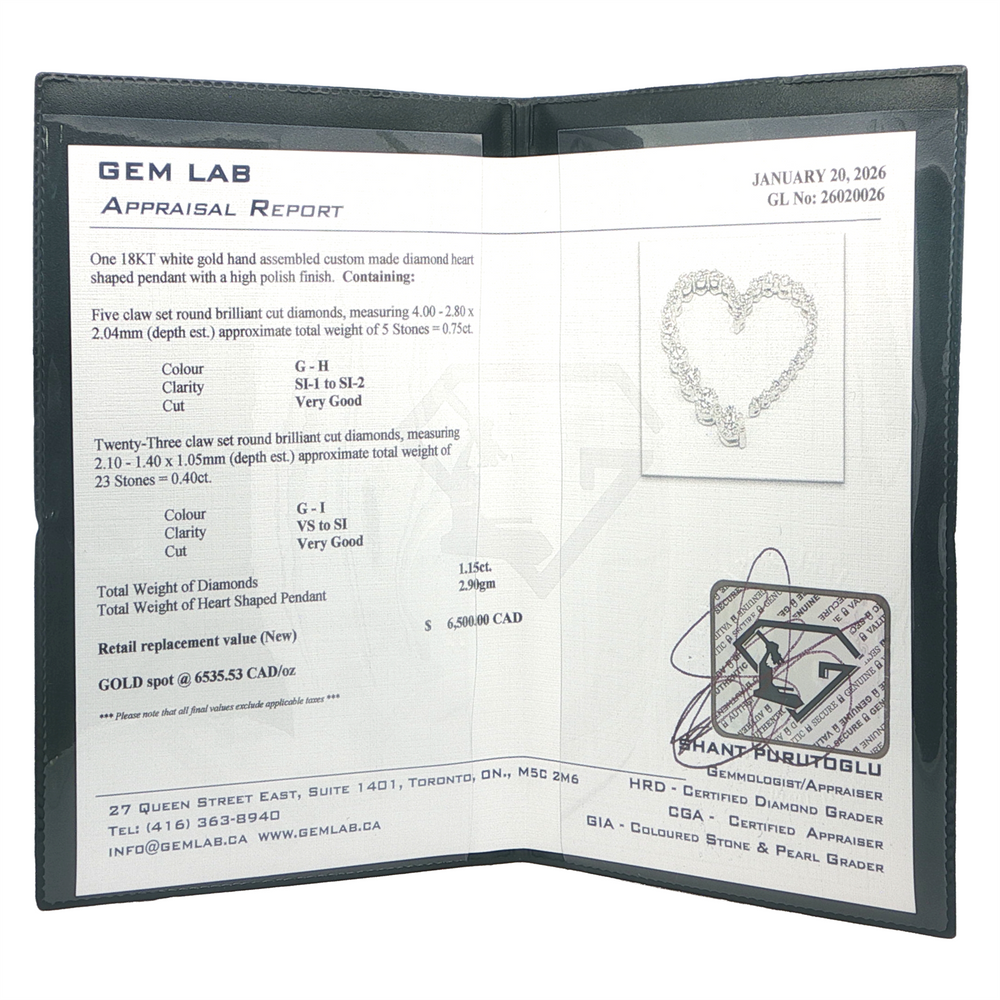 18KT White Gold 1.15ctw Diamond Heart Pendant and 18" Chain