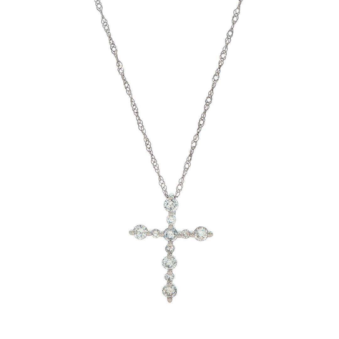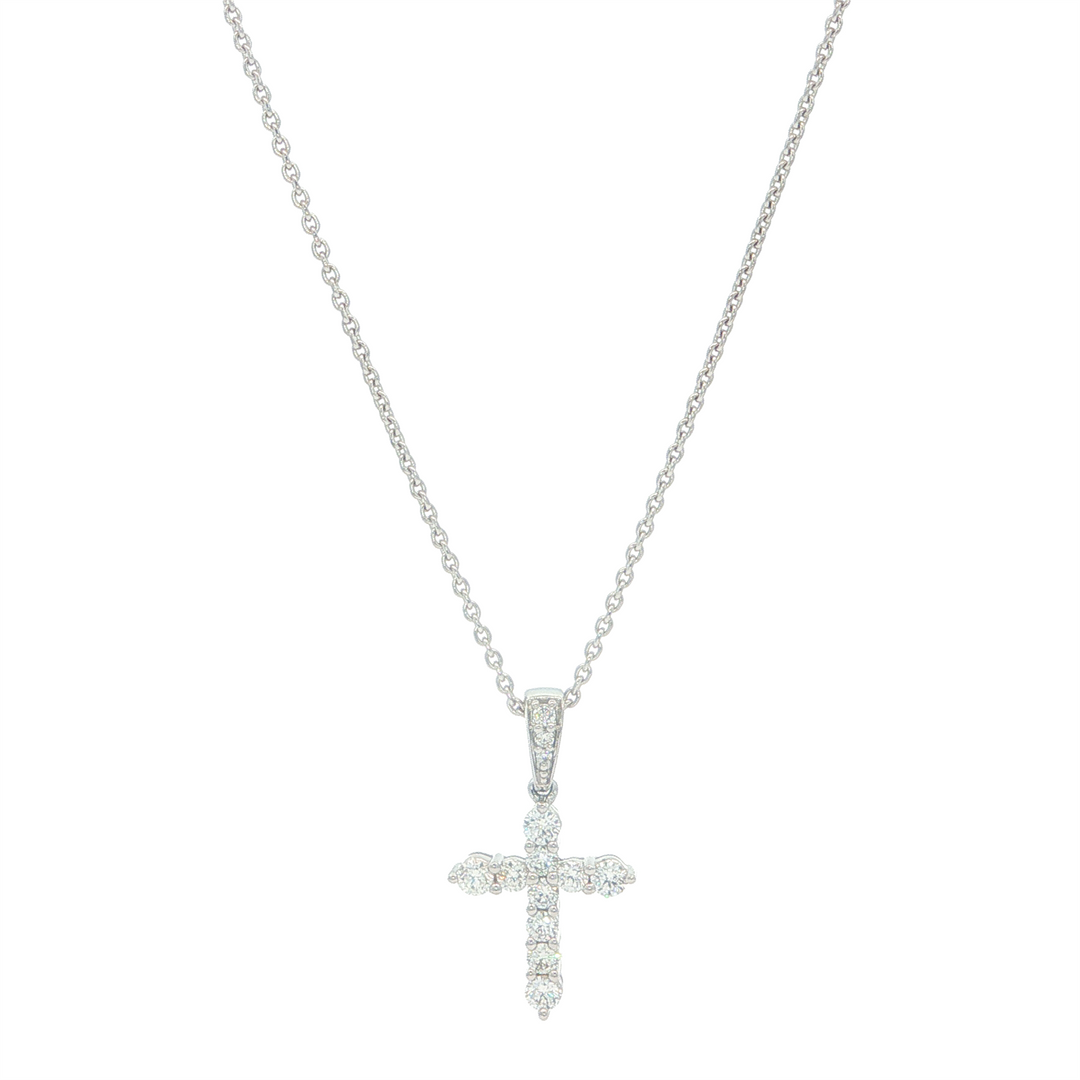 18K White Gold 0.35ctw Diamond Cross 18" Necklace