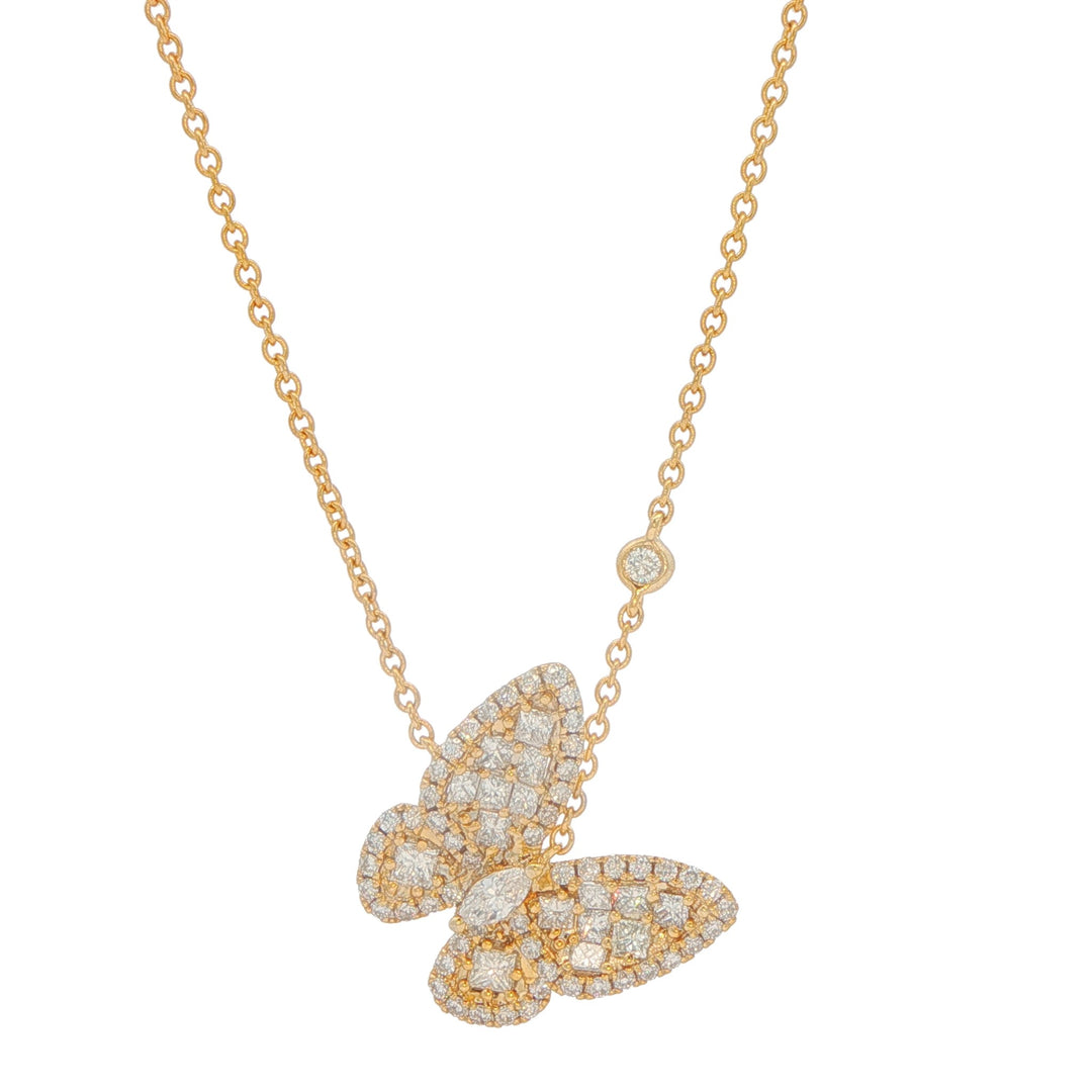 18K Yellow Gold 1.03ctw Diamond Butterfly 18" Necklace