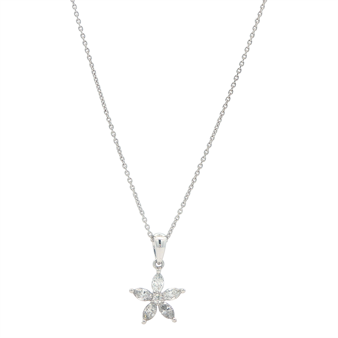 18K White Gold 0.43ctw Diamond Flower 16+2" Necklace