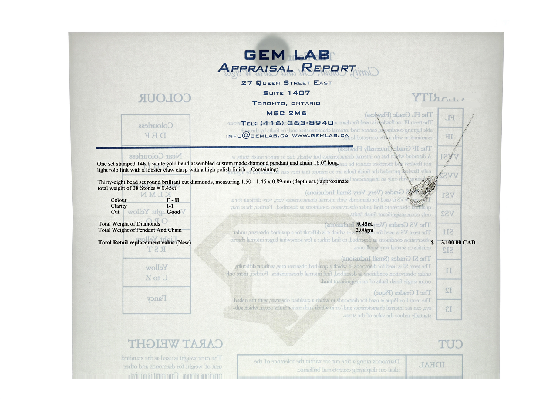 Retail Replacement Value (New) $3,100.00 CAD