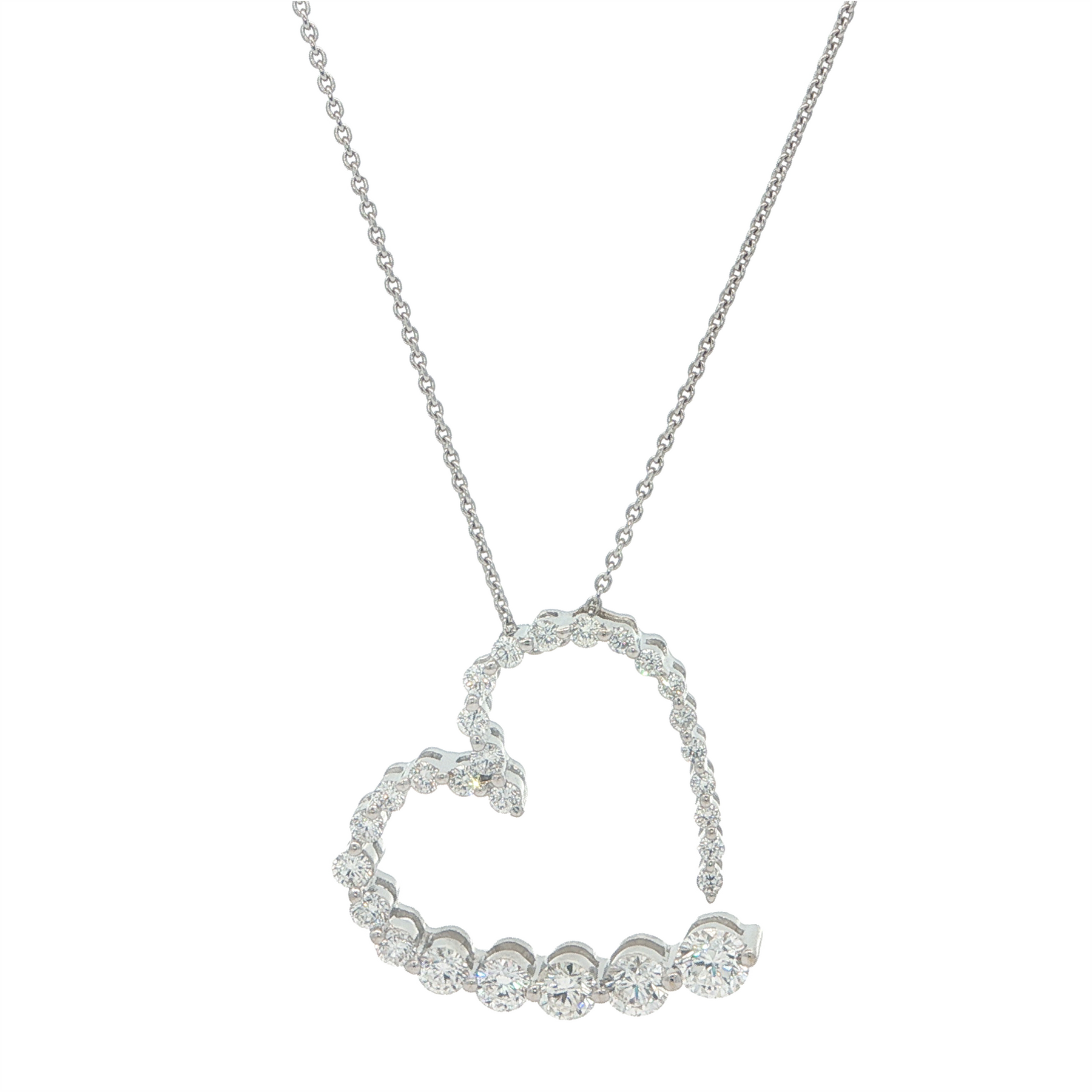 One 18KT white gold hand assembled custom made diamond heart shaped pendant with a high polish finish.