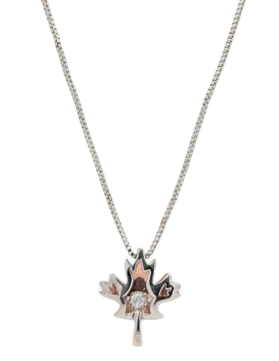 Sterling Silver and 10KT Rose Gold Maple Leaf 0.03ctw Canadian Diamond Necklace