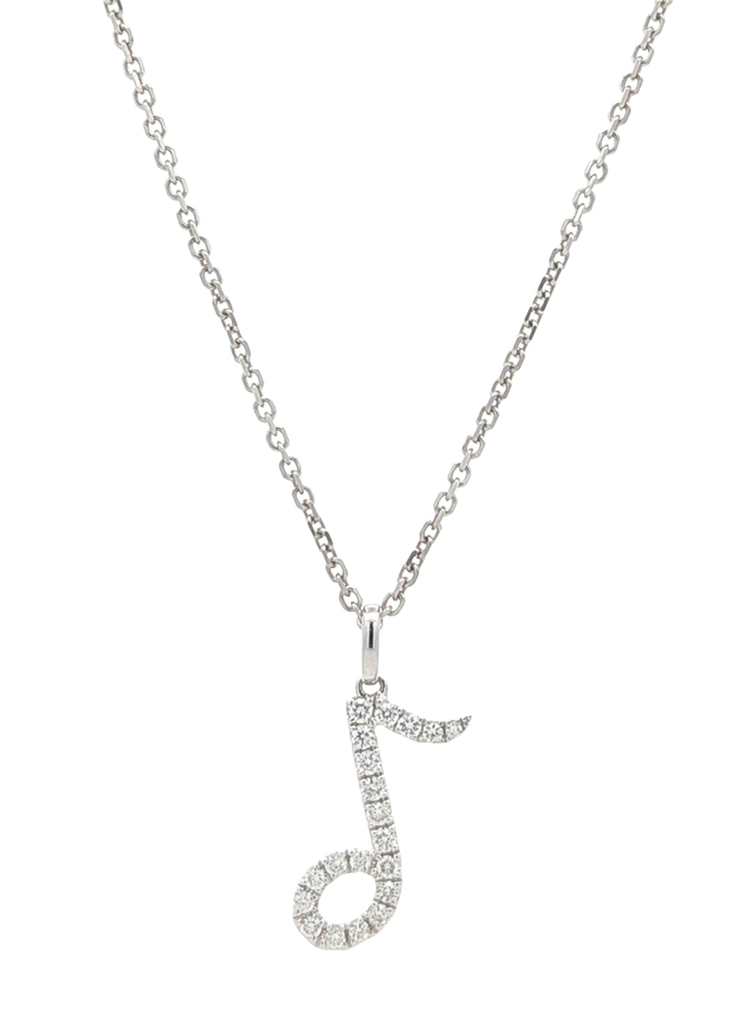18KT White Gold 0.17ctw Diamond Music Note 18" Necklace