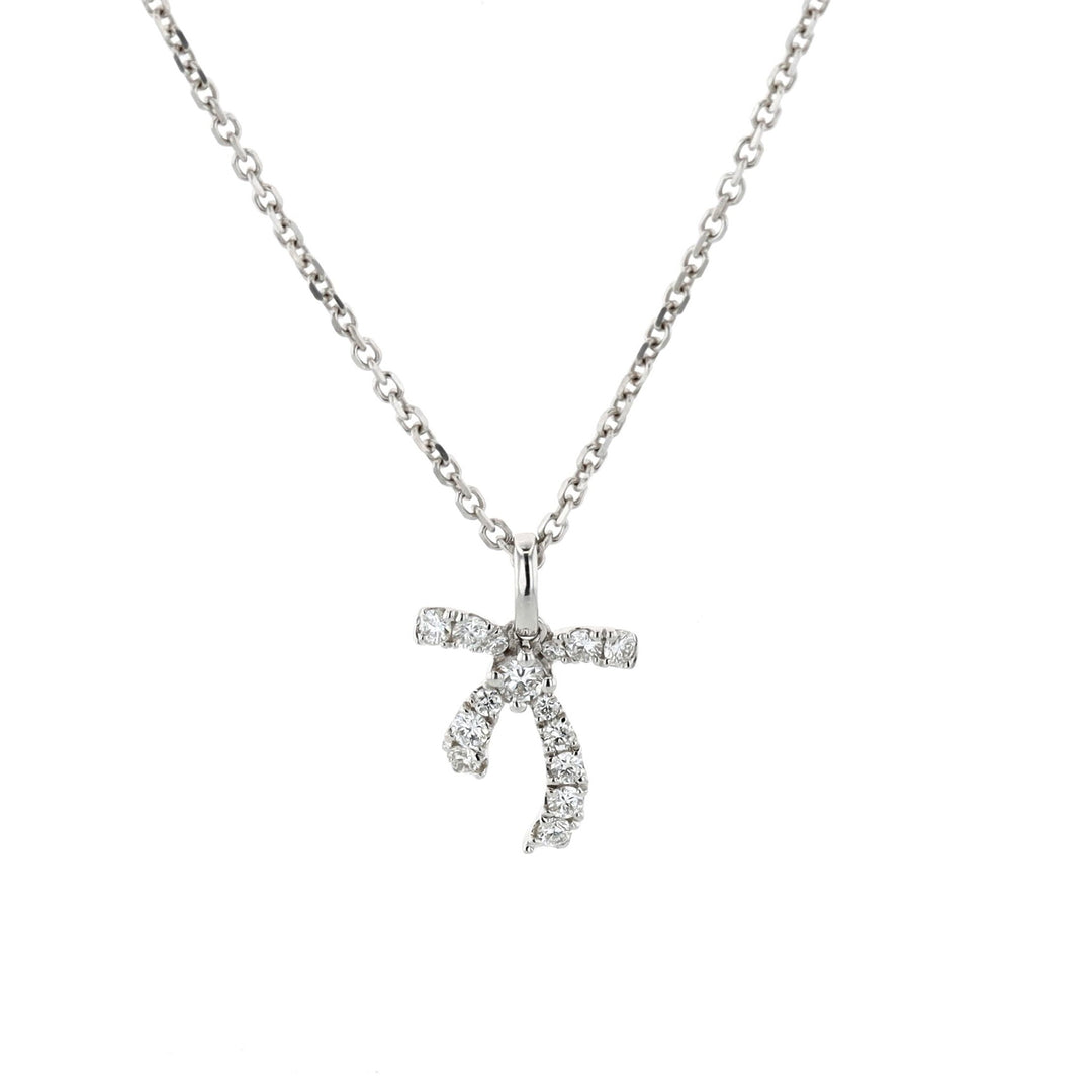 18KT White Gold 0.21ctw Diamond Bow 18" Necklace