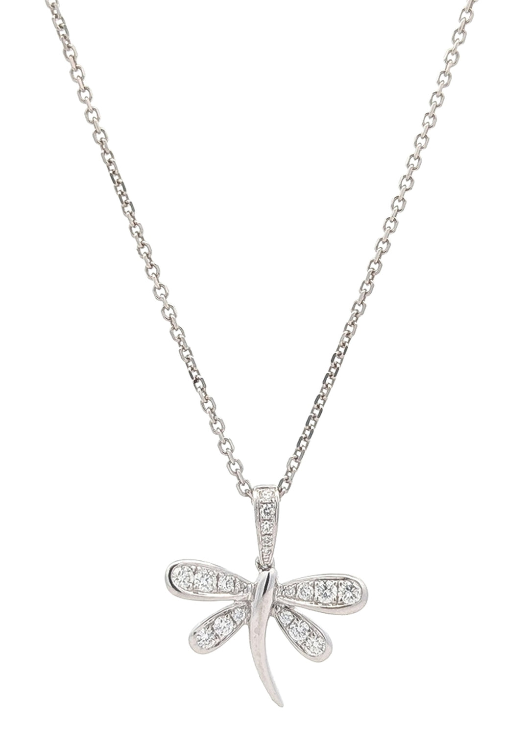 18KT White Gold 0.22ctw Diamond Dragonfly 17" Necklace